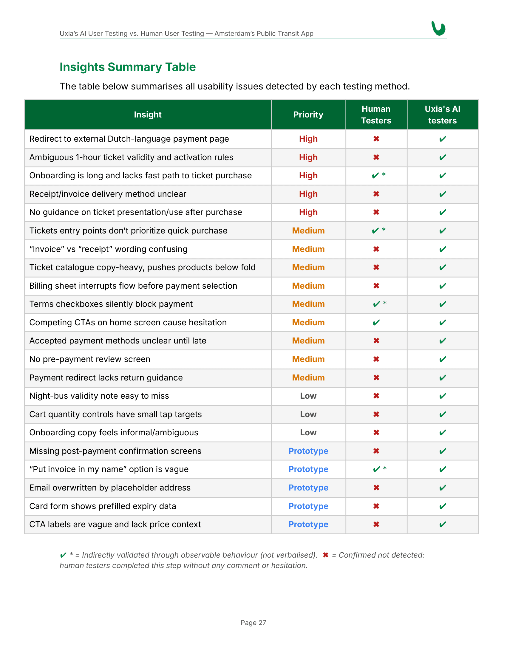 4.25x More Issues: Uxia surfaced 17 real usability issues, while humans only detected 4.